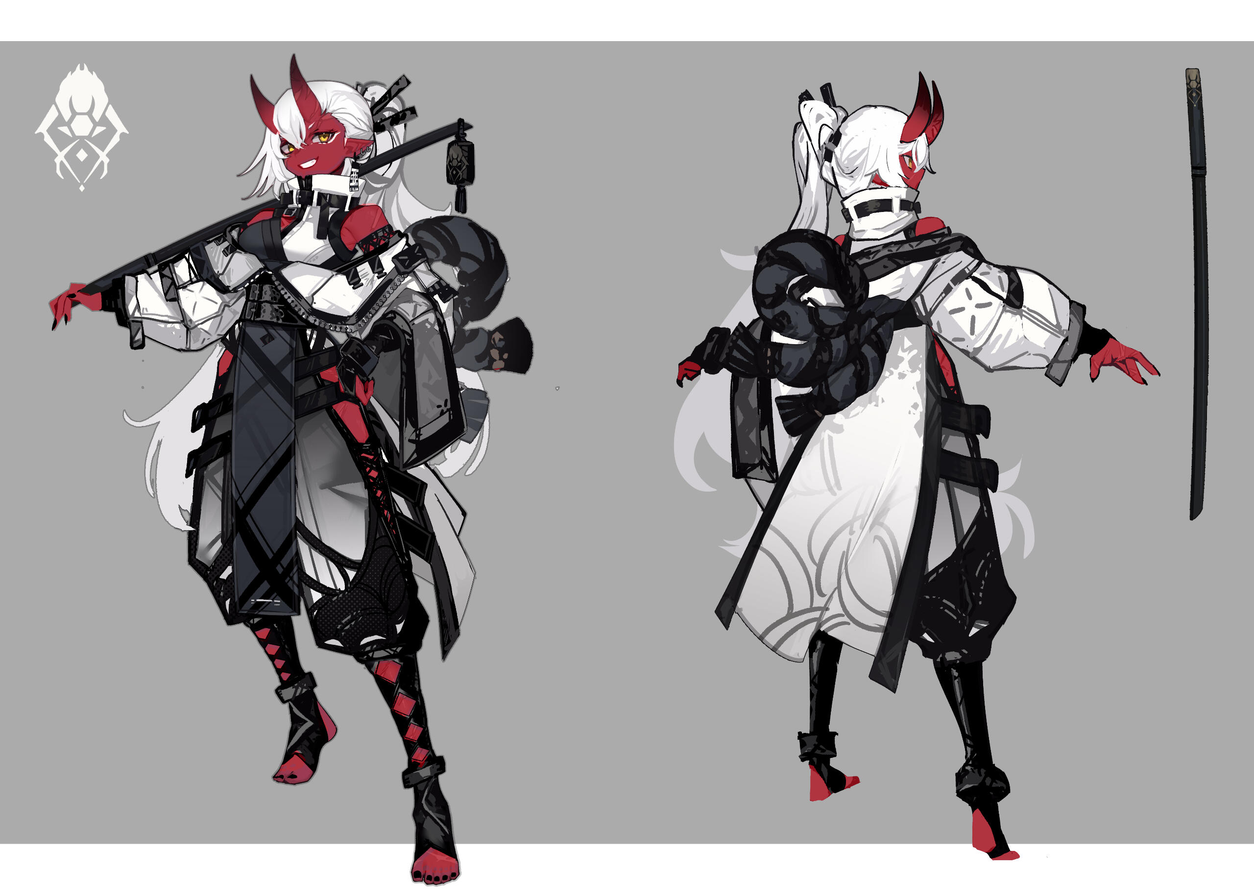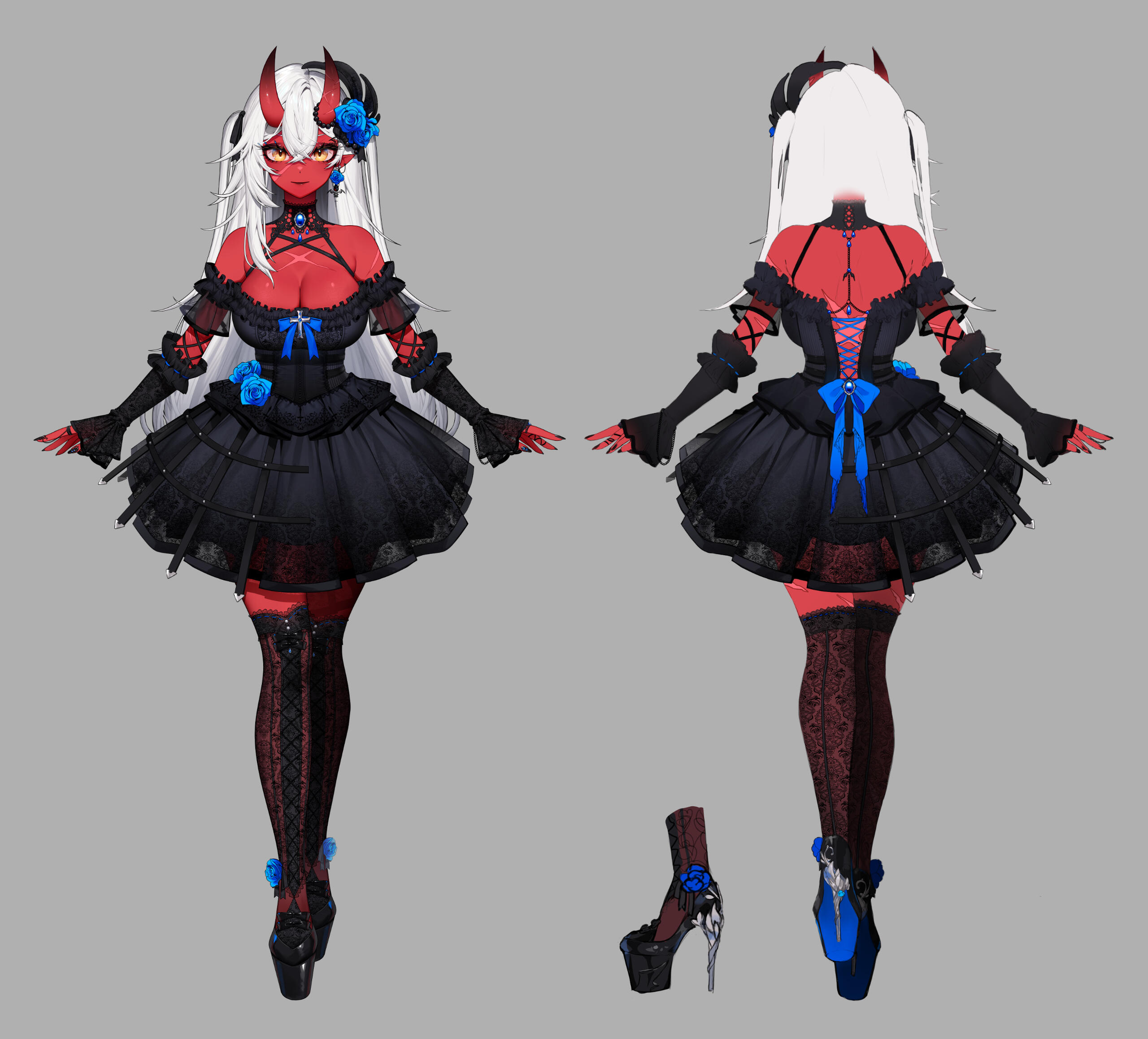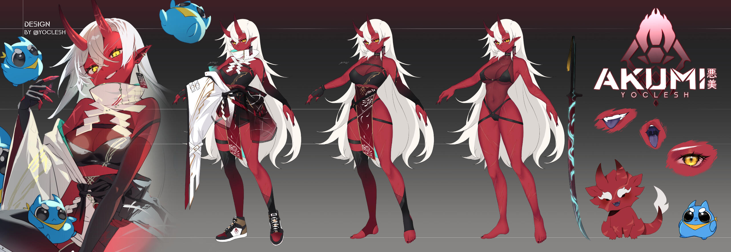 I own Akumi since 2017. She used to be an adoptable from deviantART. I redesigned her two times and in 2019 I made a poll on Instagram letting my followers choose my Twitch mascot. Akumi won the vote! Since she was my mascot I turned her also into my Vtuber character β₯
