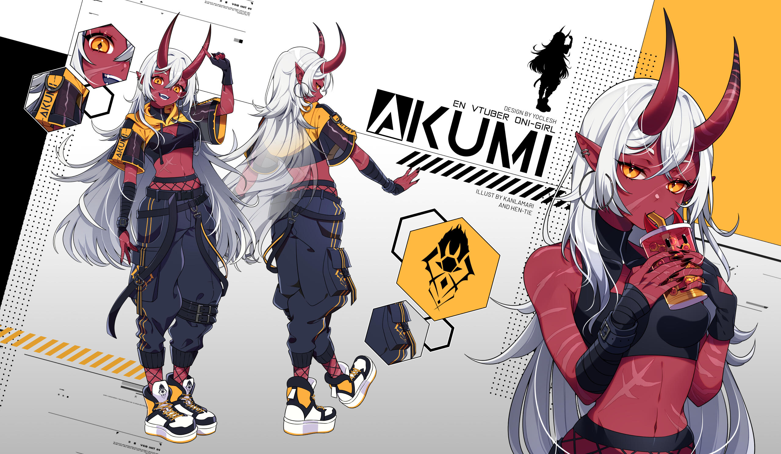 I own Akumi since 2017. She used to be an adoptable from deviantART. I redesigned her two times and in 2019 I made a poll on Instagram letting my followers choose my Twitch mascot. Akumi won the vote! Since she was my mascot I turned her also into my Vtuber character β₯
